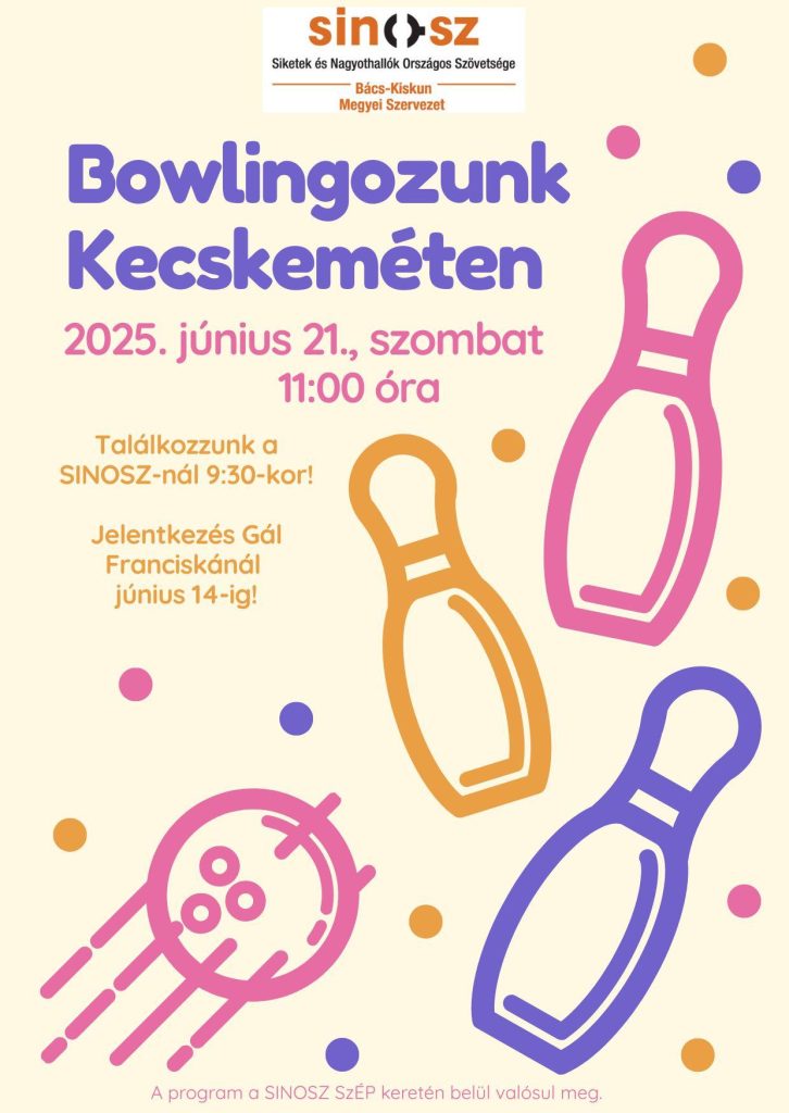 Gyere el programunkra, és gurítsunk együtt! További információk itt találhatók, jelnyelven is: KECSKEMÉTI BOWLINGOZÁS