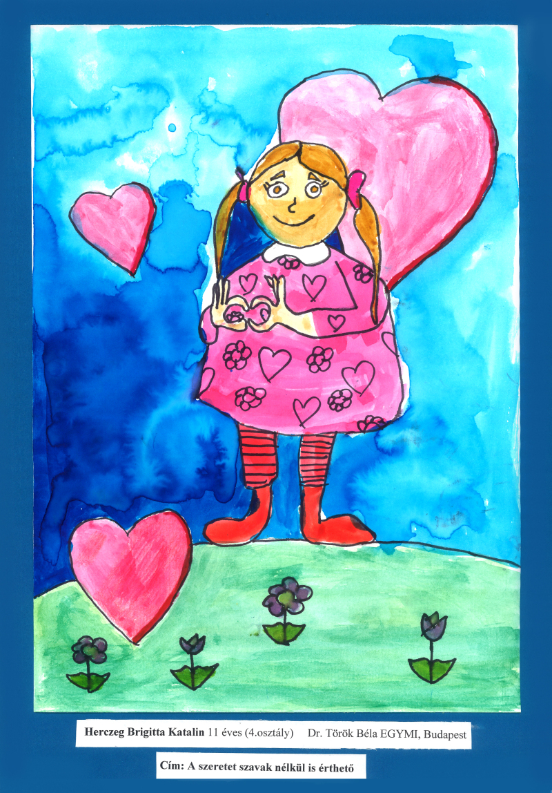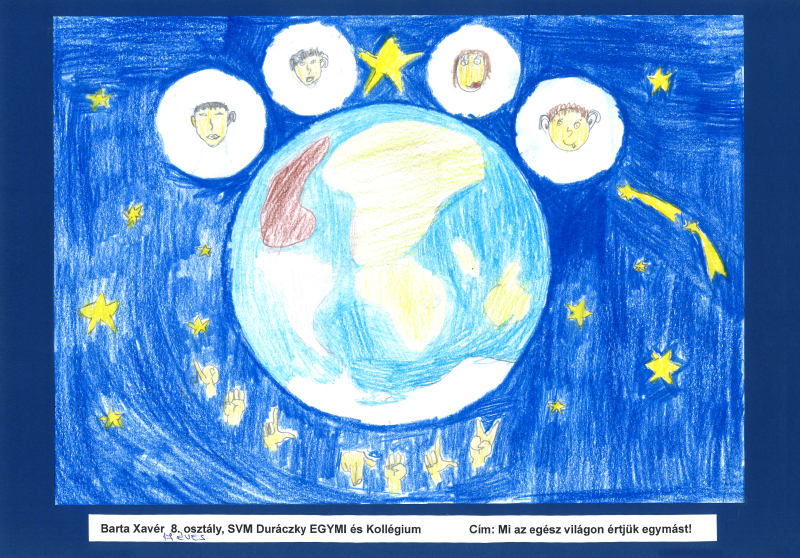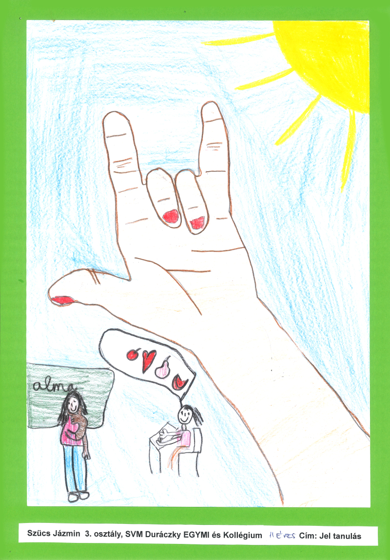 A gyermekrajzpályázatra 86 darab értékelhető pályamű érkezett*: az ország 5 siketiskolája és a Dr. Török Béla EGYMI, továbbá 3 többségi oktatási intézmény nevezett be alkotásokat több korcsoportban, emellett egyéni pályázók is küldtek rajzokat, köztük integráltan tanuló hallássérült és halló gyerekek is, ill. a SINOSZ nyári Vidám7 napközis táborában is készültek rajzok e célra.