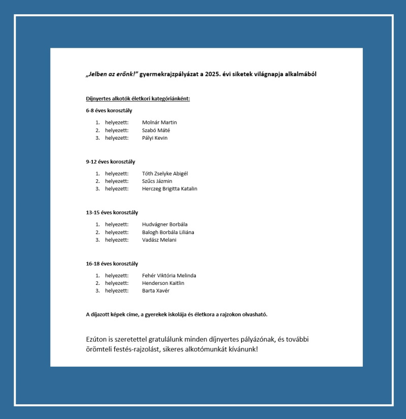 Köszönjük a részvételt minden gyereknek és fiatalnak, továbbá az iskolák, a pedagógusok közreműködését is.