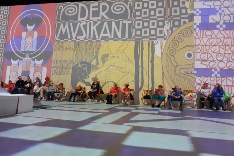 A tárlat első szakaszában a szecessziós stílus egyik legismertebb képviselőjének életrajzába tekinthettünk be, majd továbbhaladva, a térkompozíciókon és fényeffektekkel pásztázott képeken keresztül fokozatosan vonódtunk be Klimt belső világába. A 360°-os vetítésen, az alkotó legismertebb műveiből fény- és hangjátékkal komponált koncerten merülhettünk el teljesen különös, formabontó, olykor meghökkentő, mégis lenyűgöző művészetében.