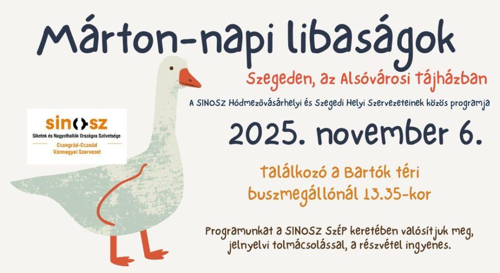 December 4-én a SINOSZ Fejér, Tolna és Vas Vármegyei Szervezeteinek tagjaival a Fehérvári Advent 2025 ünnepre hangoló kalandjaiban veszünk részt. Részletek ebben a hírben olvashatók és jelnyelven is elérhetők.