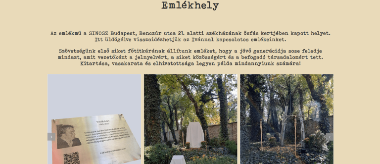 A Siketek és Nagyothallók Országos Szövetsége megalapításának 110. évfordulóját egy országos, nagyszabású rendezvénnyel ünnepeltük meg. Az egész napos, késő éjjelig tartó eseményen mintegy 2000 magyar és külföldi vendég ünnepelte együtt Szervezetünk jubileumát. A rendezvény internetes oldalán nemcsak annak programját idézzük fel, hanem rövid áttekintést adunk e 110 esztendő fontosabb történéseiről is: 2020-ban, életének 75. évében elhunyt Vasák Iván, a SINOSZ első siket főtitkára. Az ő munkásságának, kivételes személyiségének emléket állítva létrehoztunk egy internetes emlékoldalt, hogy kortársai ne feledjék, és a későbbi nemzedékek is megismerhessék az életútját és érdemeit:Szövetségünk országos székházának kertjében egy emlékhellyel is tisztelgünk Vasák Iván előtt: a Gyurcsovics Mihály, fiatal nagyothalló szobrász által megalkotott, hidat formázó emlékmű mellett egy emléktáblát is állítottunk, „hogy a jövő generációja sose feledje mindazt, amit vezetőként a jelnyelvért, a siket közösségért és a befogadó társadalomért tett”: